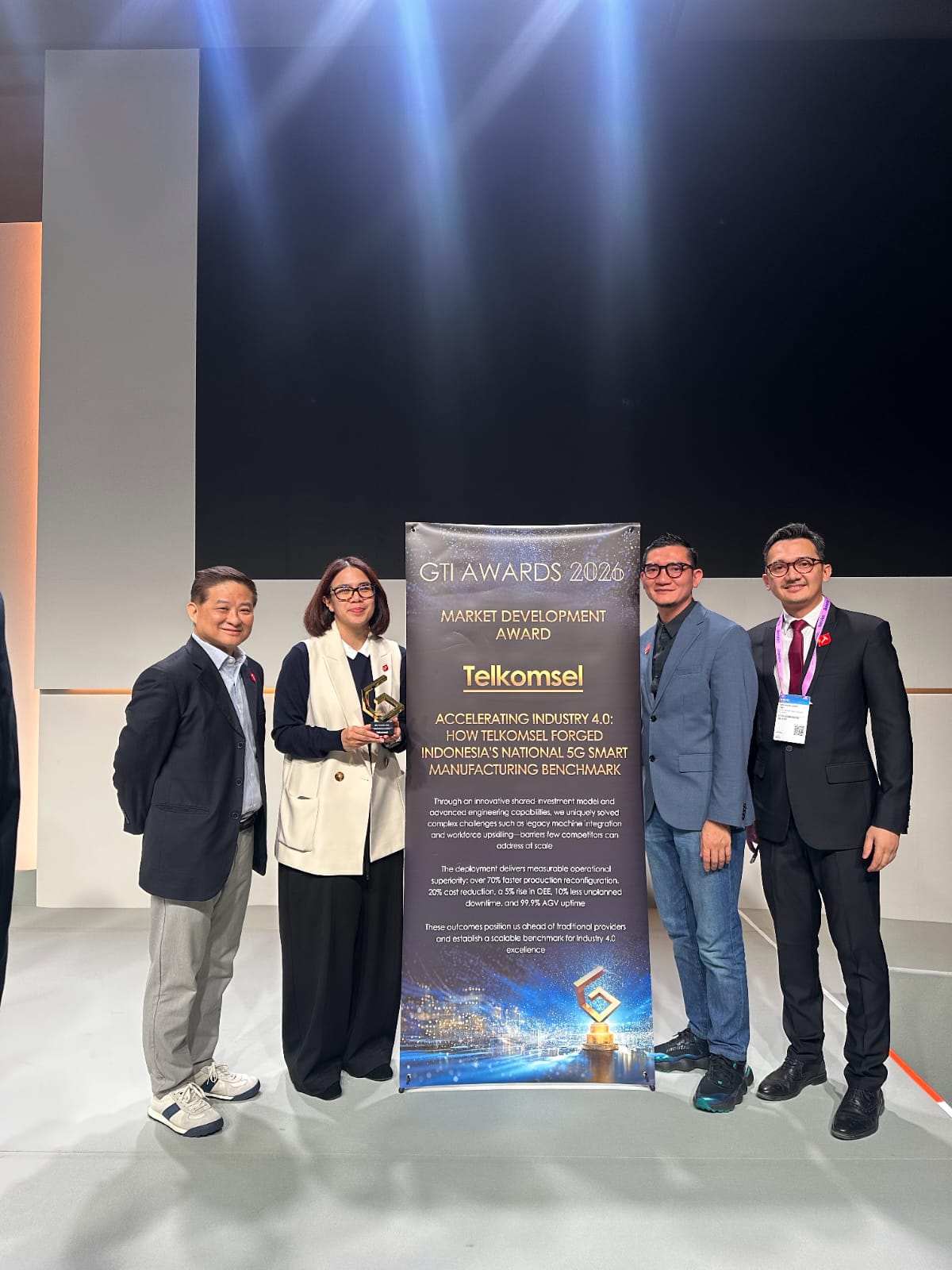 Penghargaan ini diberikan atas inisiatif dalam proyek “Accelerating Industry 4.0: How Telkomsel Forged Indonesia’s National 5G Smart Manufacturing Benchmark”, dengan pengembangan jaringan private 5G/5G‑A generasi baru di Pegaunihan, kawasan smart manufacturing Pegatron yang berlokasi di Batam seluas 85.000 m². Jaringan “private 5G” adalah jaringan 5G khusus yang hanya digunakan di lingkungan industri tertentu, sehingga lebih stabil, cepat, dan aman dibanding jaringan publik.
